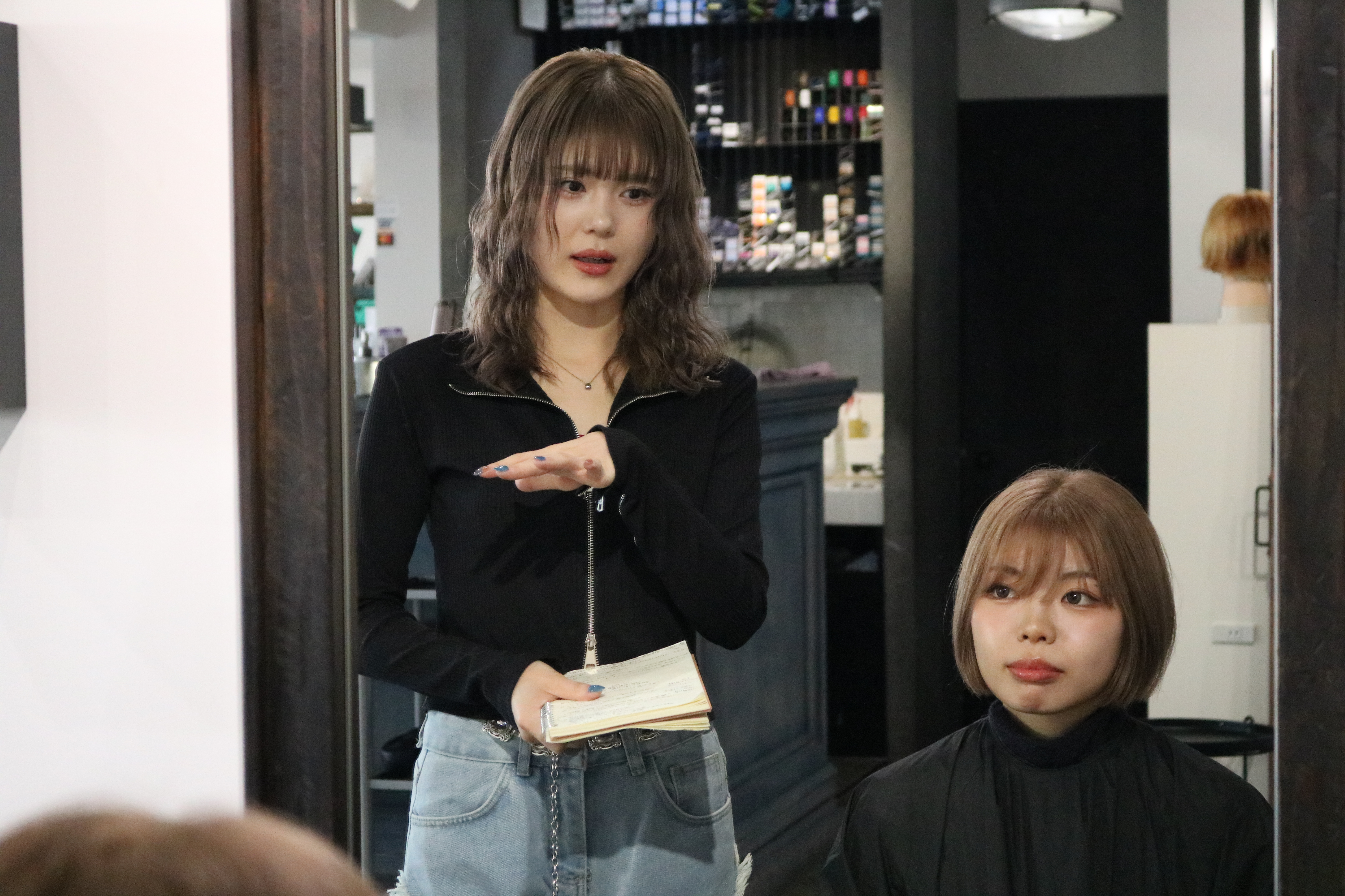 お客様の「なりたい姿」やライフスタイルに合わせて、レイヤーの幅や動きを細かく調整されてていました。