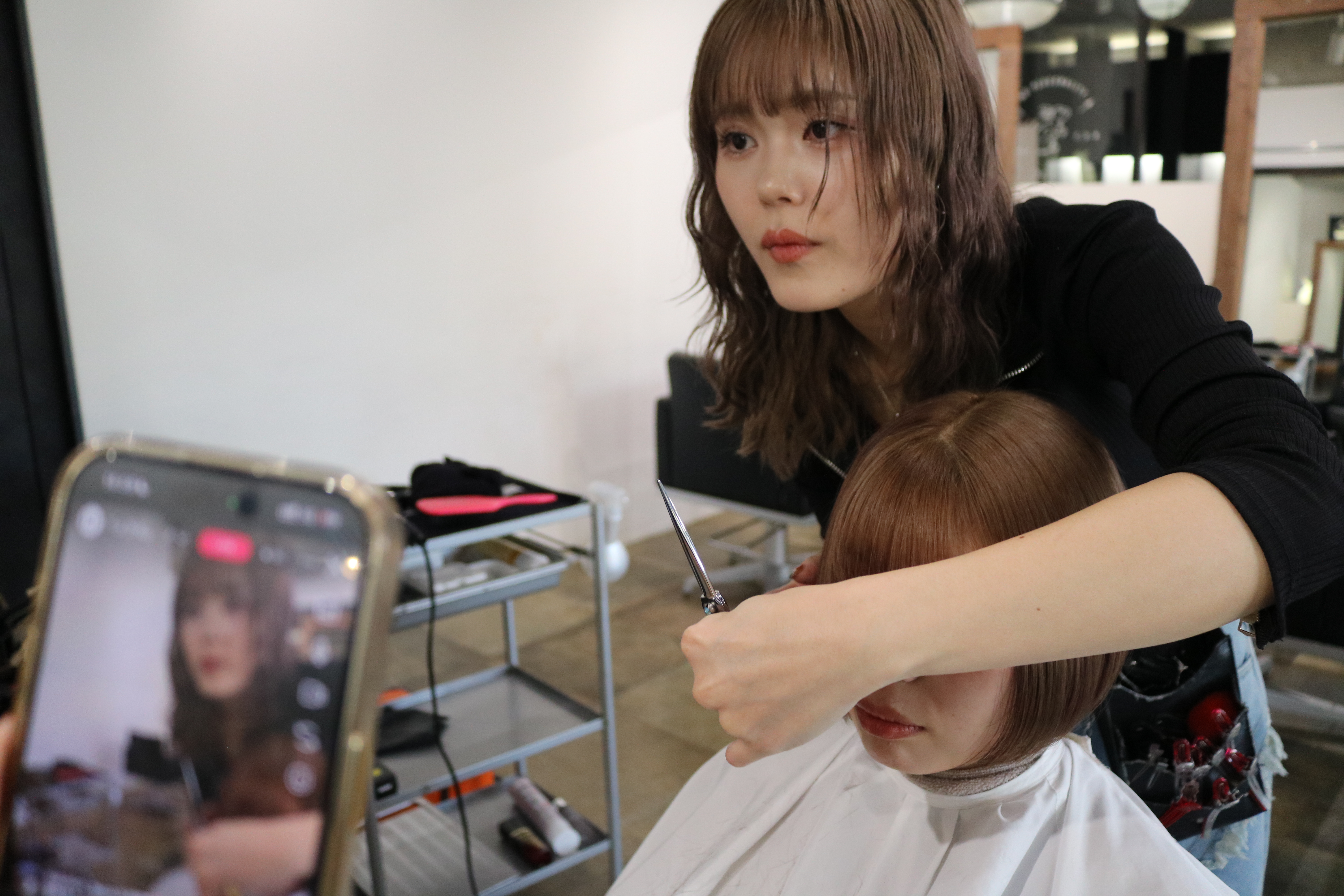 お客様と相談しながら進める、安心感のある似合わせカットが印象的です。