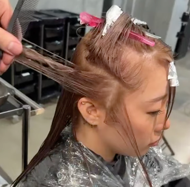 ・顔周りはホイルにブリーチを塗ってからパネルに沿わせて塗る