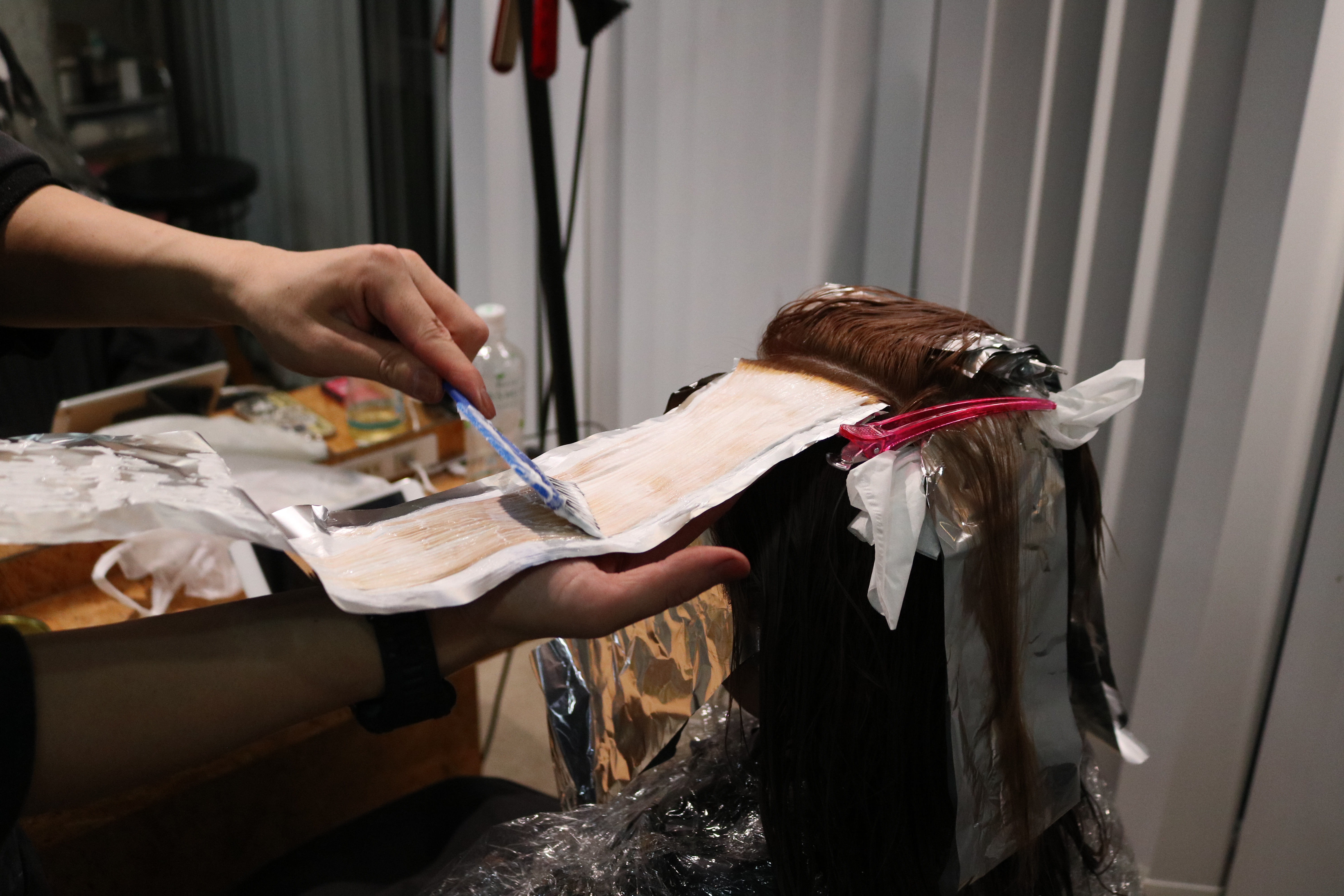 先にホイルでマーキングすることにより、ブリーチのときに焦らなくてすむのでおすすめですよ。