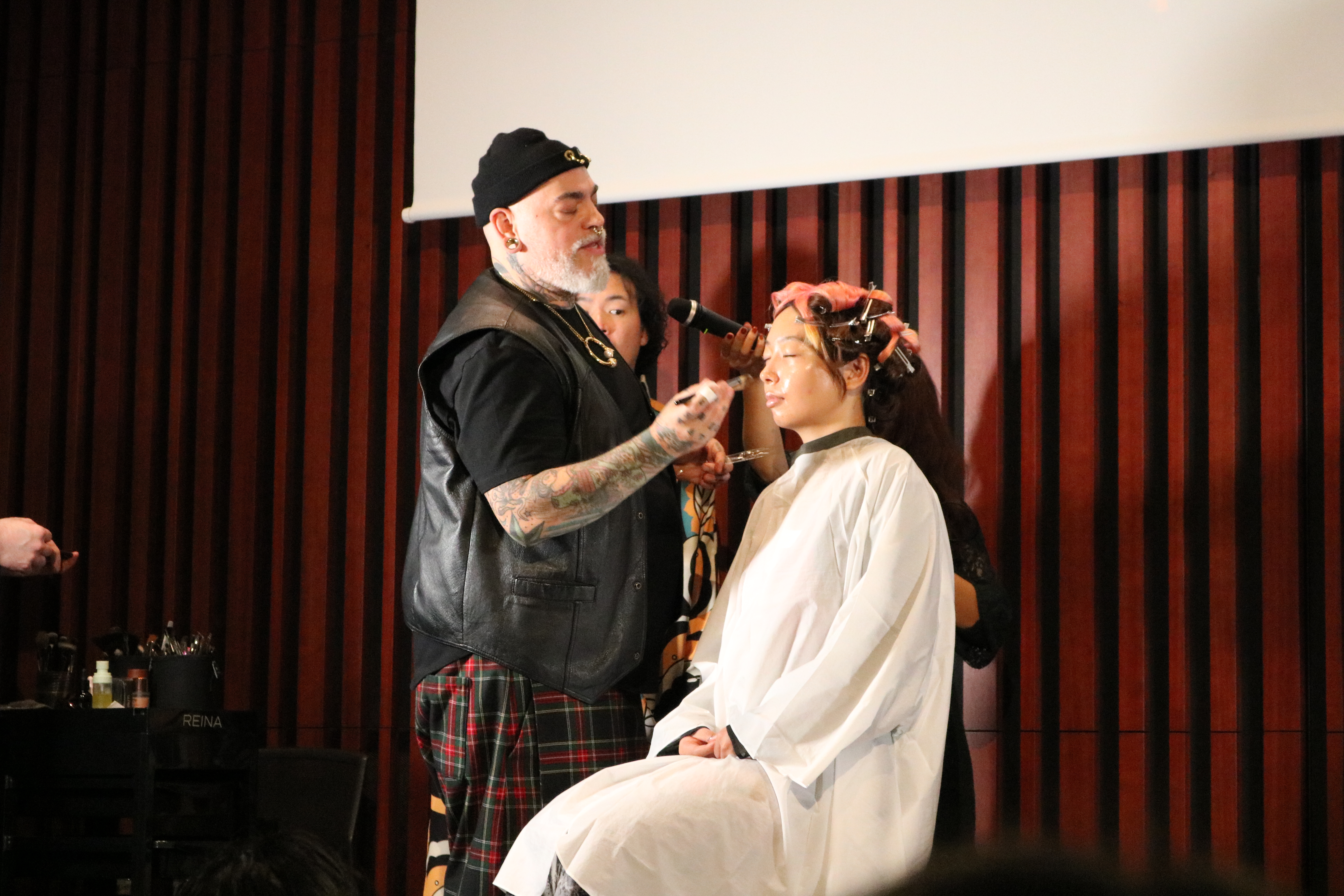 その想いに共感した美容師や美容学生、メイクアップアーティスト、企業関係者など約400名が集まりました。30カ国からさまざまな人が訪れ、ステージ前には立ち見が出るほどの熱気に包まれた会場。