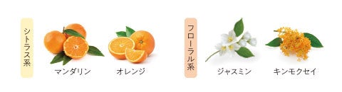 フレッシュなマンダリンやオレンジを、優しく包むジャスミンとキンモクセイ。