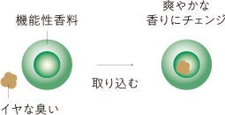 汗臭、皮脂臭、タバコ臭などイヤな臭いを取り込み、
