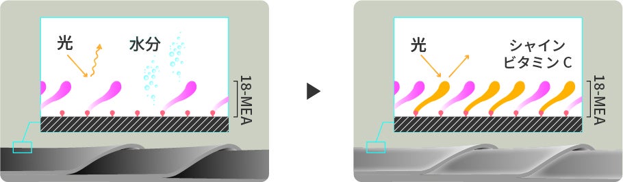 毛髪上にグルコース由来のエキスがバリア膜をつくり、花粉やほこりなど空気中の微粒子から髪を守ります。