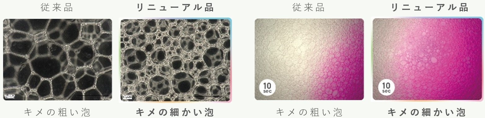 泡質:よりキメ細かくなることで、へたりにくくコシのある泡になりました。