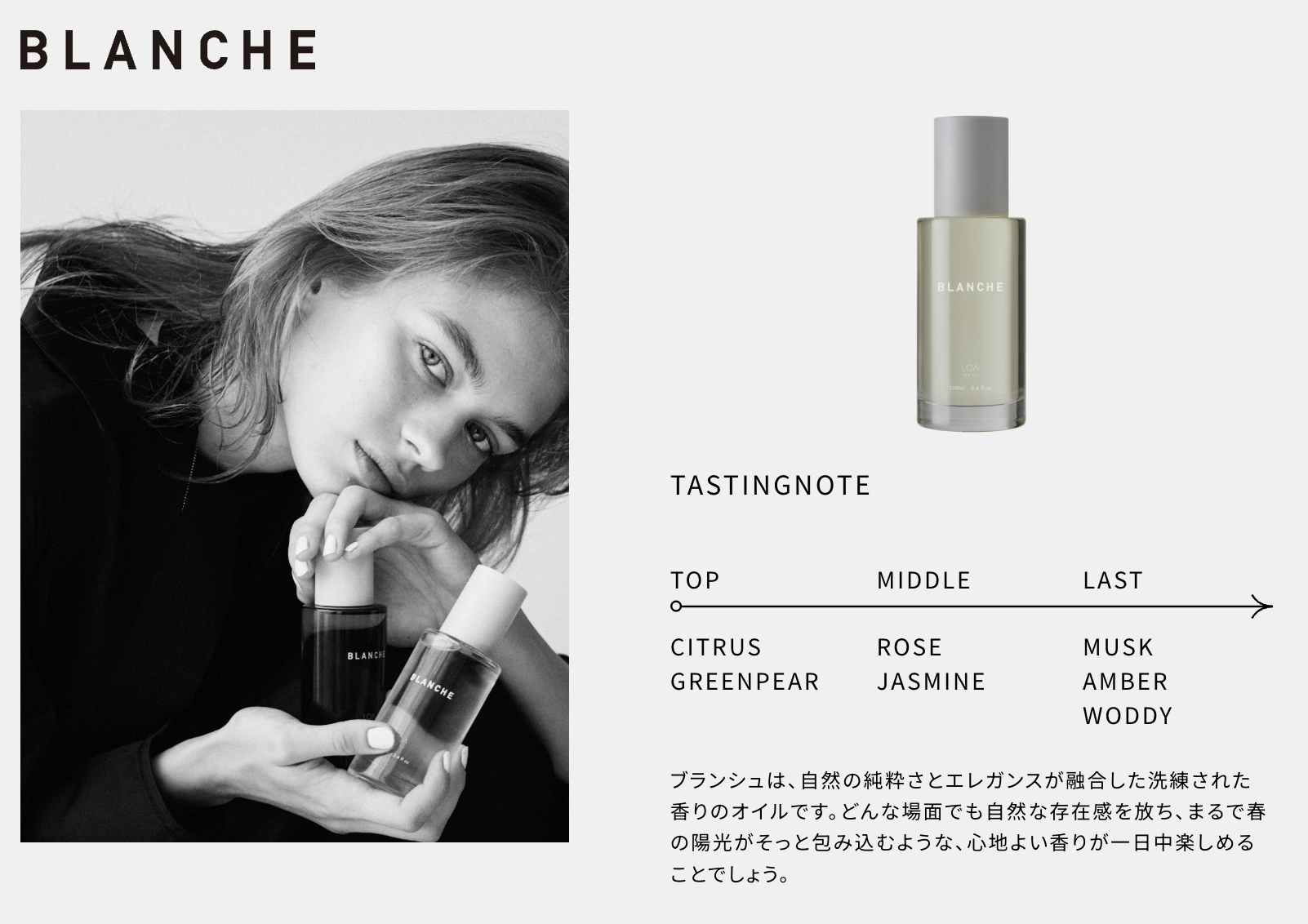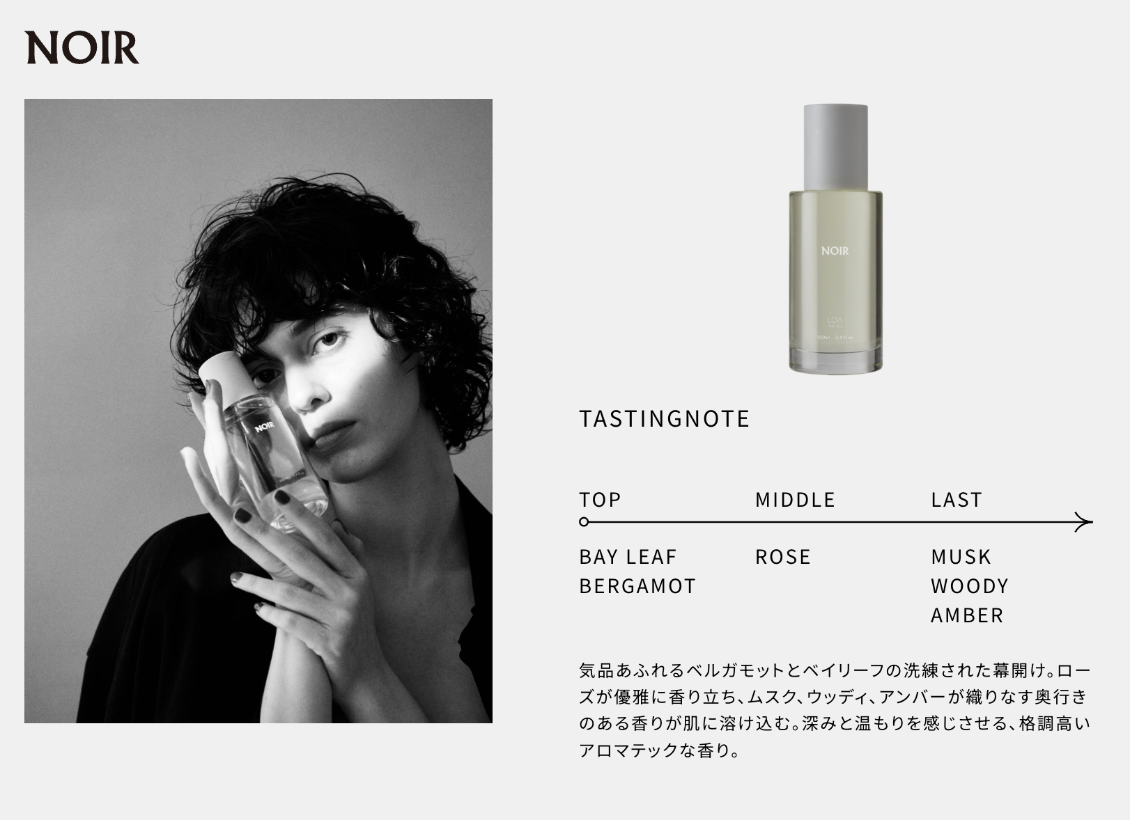 LOAが創り出す “香りのラグジュアリー” と自然に溶け合い、プロダクトが持つ世界観を一層引き立てます。
