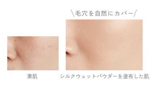 「FOR SALONS シルクウェットパウダー」では、従来の「シルクウェットパウダー」よりも多い3種類のシルクを配合しており、より軽くて崩れにくい仕上がりを実現しました。他にも国産アコヤパールや3種類の植物色素を加え、透明感のある内側から輝くような艶肌に導きます。